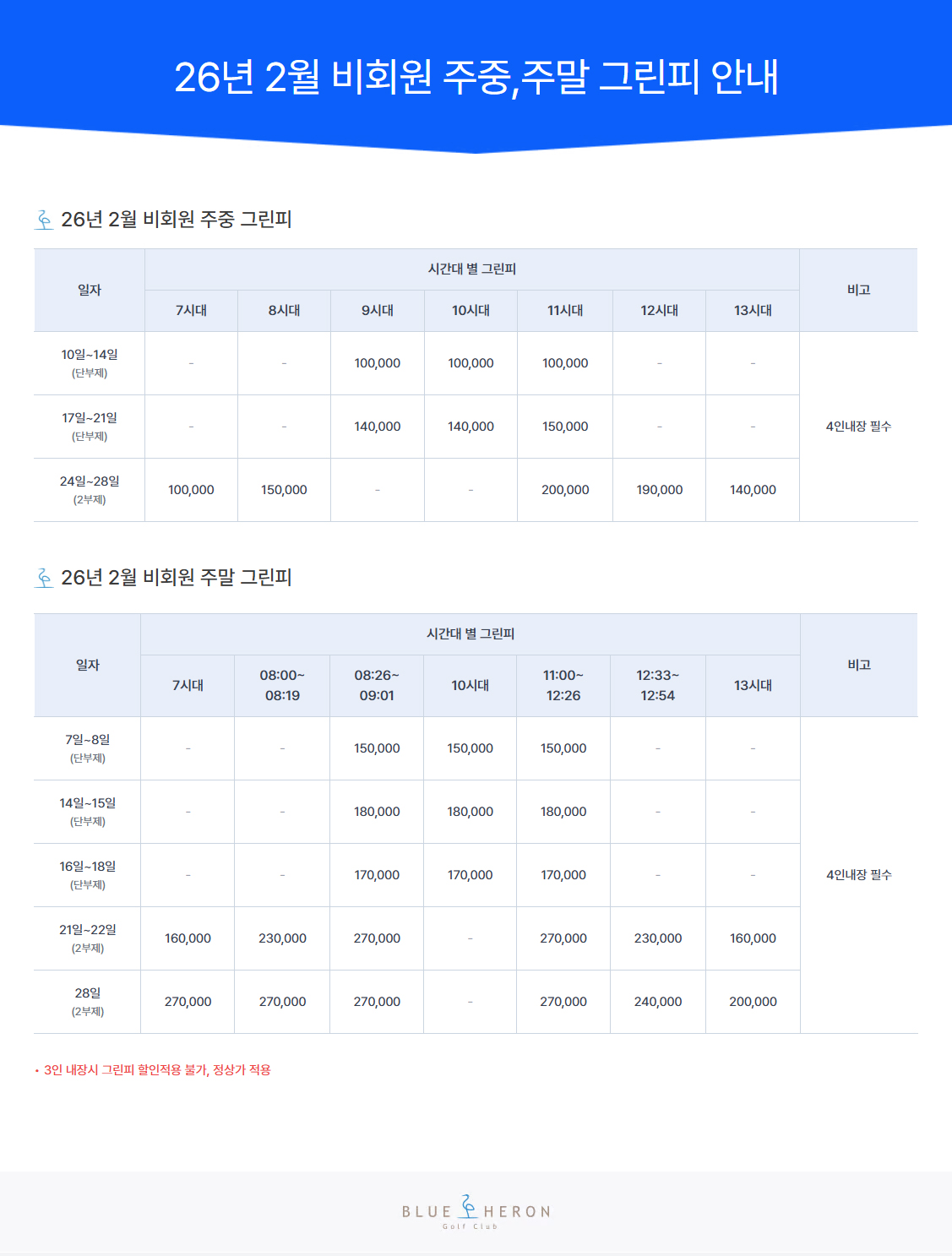 제목26년 2월 비회원 주중,주말 그린피 안내